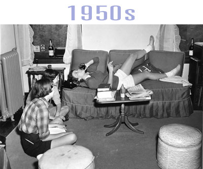 From the perspective of 2014, the strangest part of it all is that at the time, these rules and arrangements seemed normal. Annoying, but normal – even the hordes of couples frantically kissing outside the dorm at 11:45 on weekend nights. The scene might have come right out of a Fellini movie, but we didn’t have Fellini, he was just starting out in the early 50s. I suppose it should be said, in defense of parietal rules, that we didn’t have The Pill, either. We did have inside clothes, although I don’t think anyone sold pajama pants separately in those days, and we had outside clothes for movies and dates (“dates?”).
