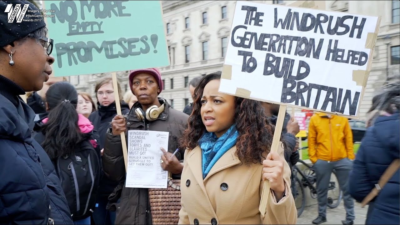 Sara Burke leads a Windrush protest in London