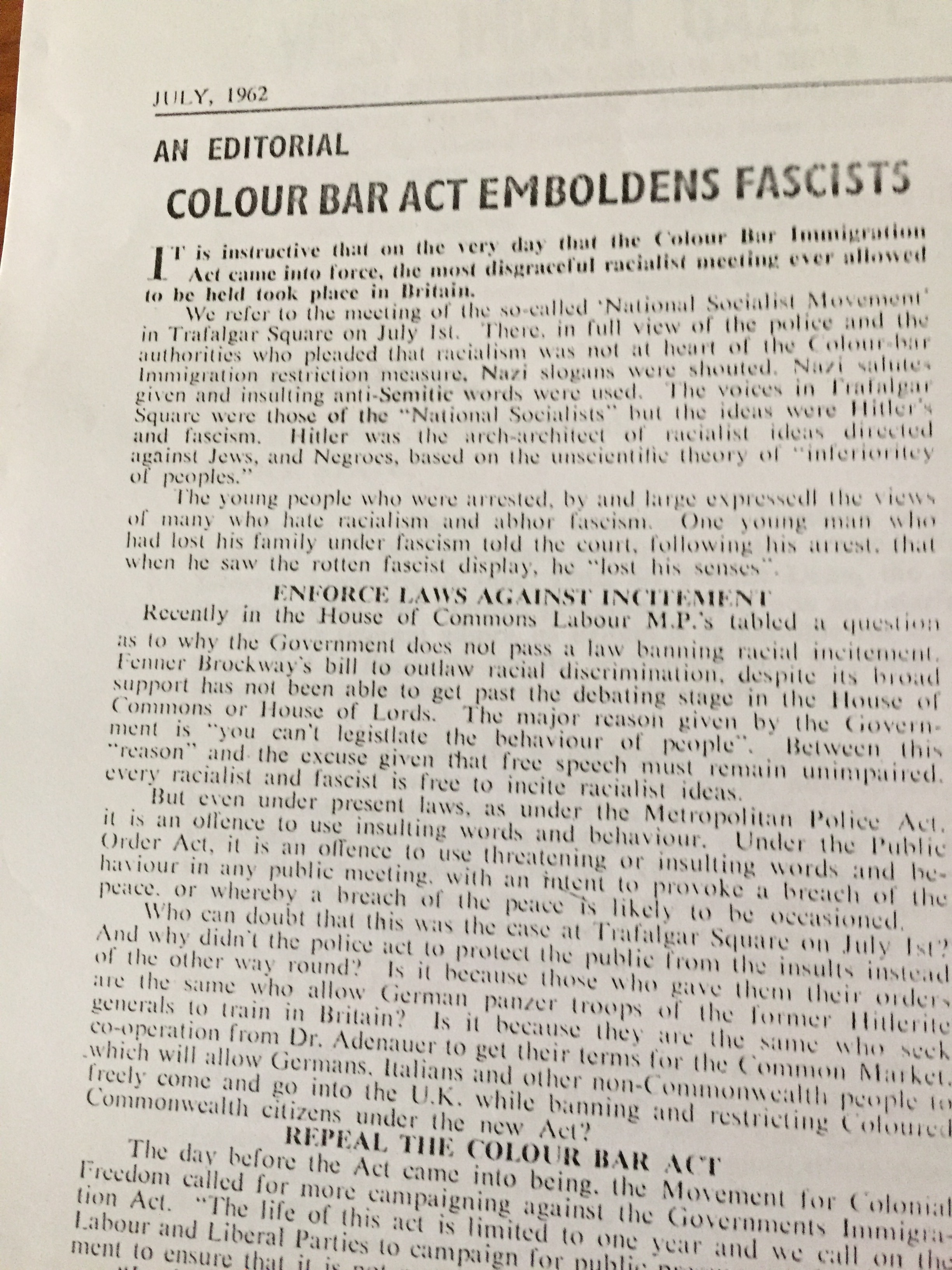 Editorial: The Colour-Bar Bill (1962)